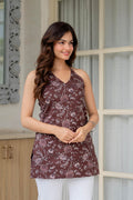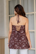 Brown Florals in a Halter-Neck