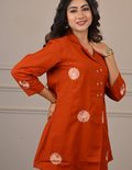 Experience timeless charm with our Premium Pure Cotton Slub Angrakha Co-ord Set, designed to blend traditional elegance with modern comfort. The angrakha-style top features beautiful original embroidery with button detailing on the kurti and sleeves, adding a graceful touch to your look.