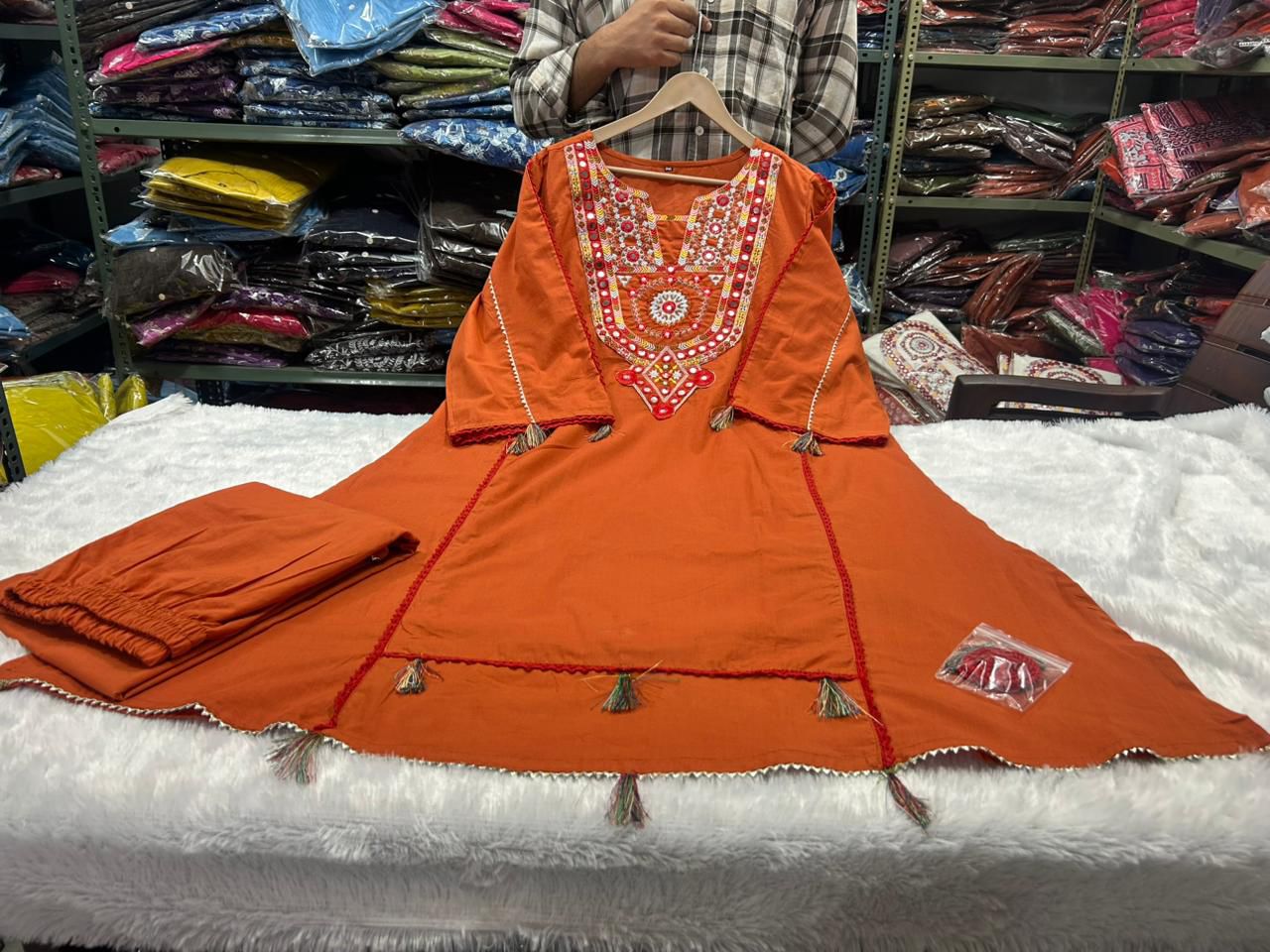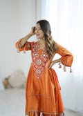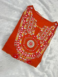 Rust Orange Elegant Cotton Mirror Work Cord Set