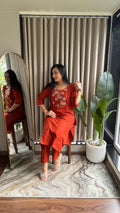 The matching embroidered pant completes the coordinated look — perfect for daily wear, office attire, or casual outings. Experience the perfect blend of traditional charm and modern comfort in one timeless ensemble.