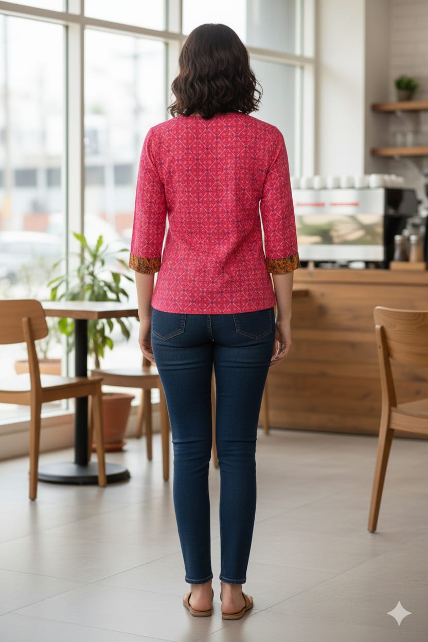 Add effortless ethnic charm to your everyday wardrobe with our Hand Block Printed Cotton Top, crafted using traditional Bagru printing techniques. Made from breathable pure cotton, this top is designed for all-day comfort, making it perfect for office wear, daily outings, and college wear.