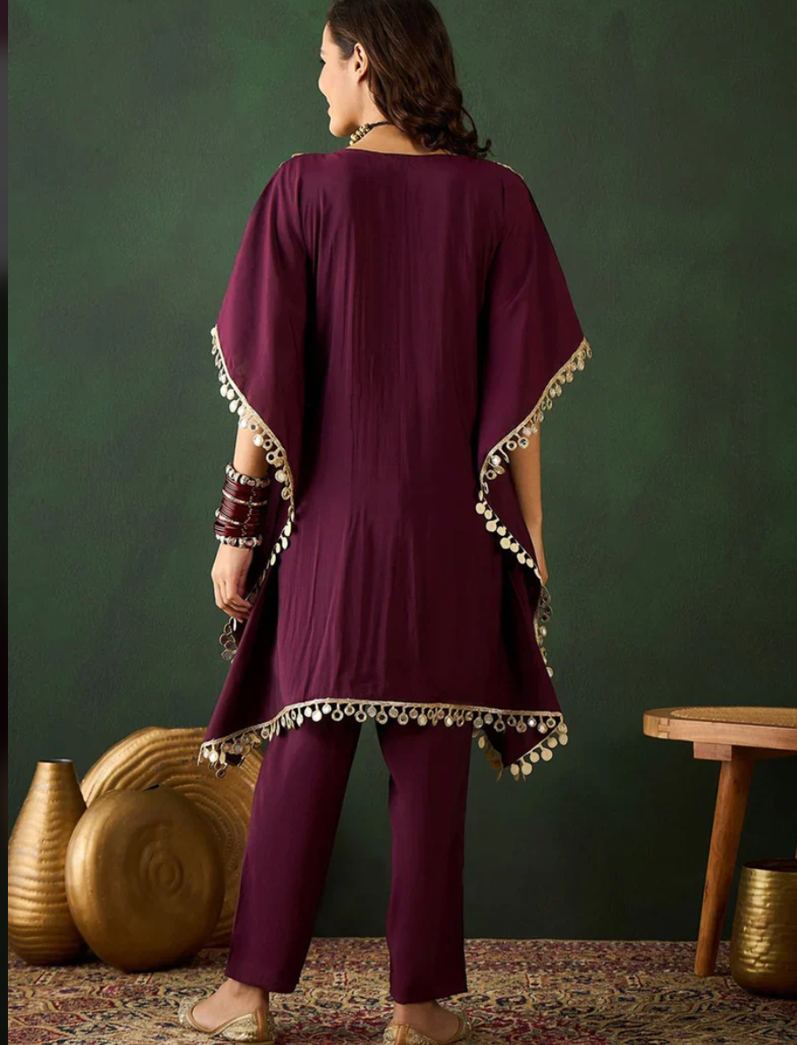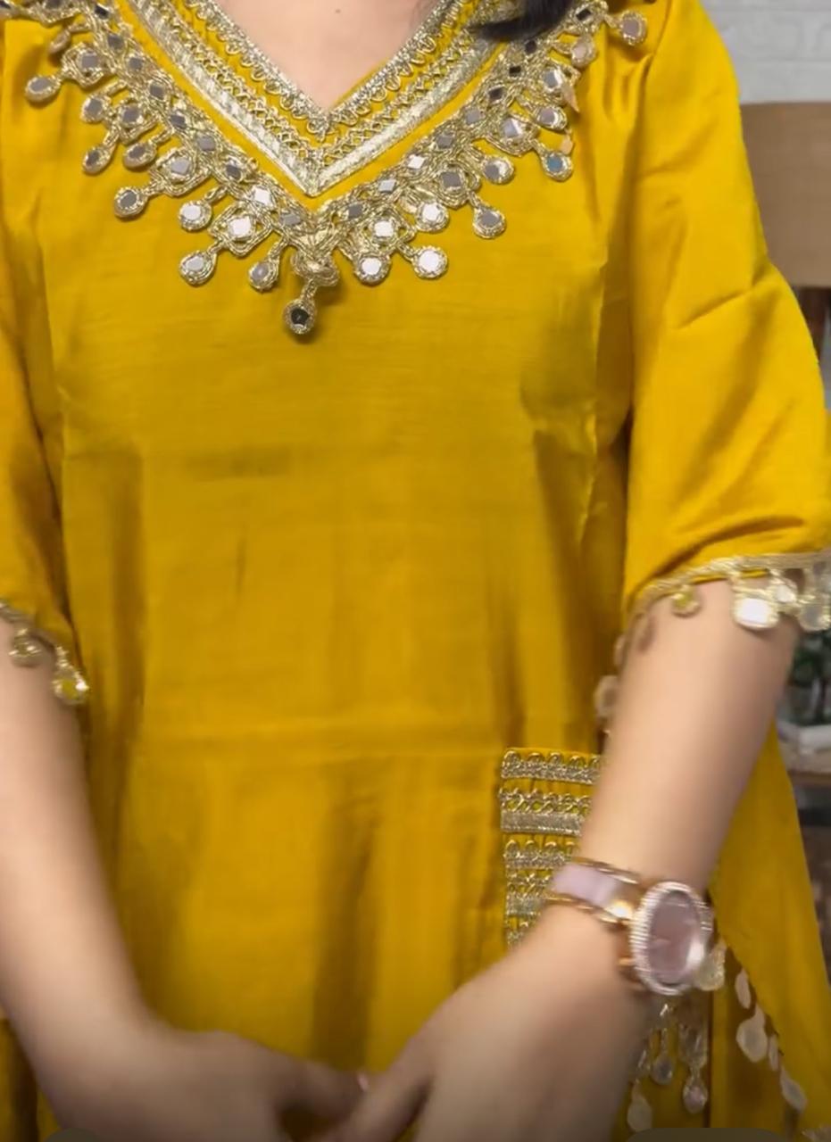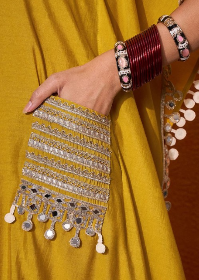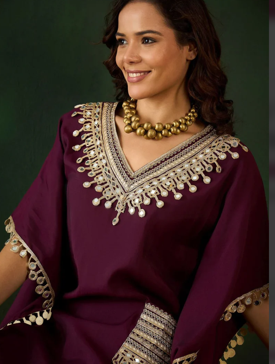 - Intricate Kaftan design with Lace and Mirror Work detailing.