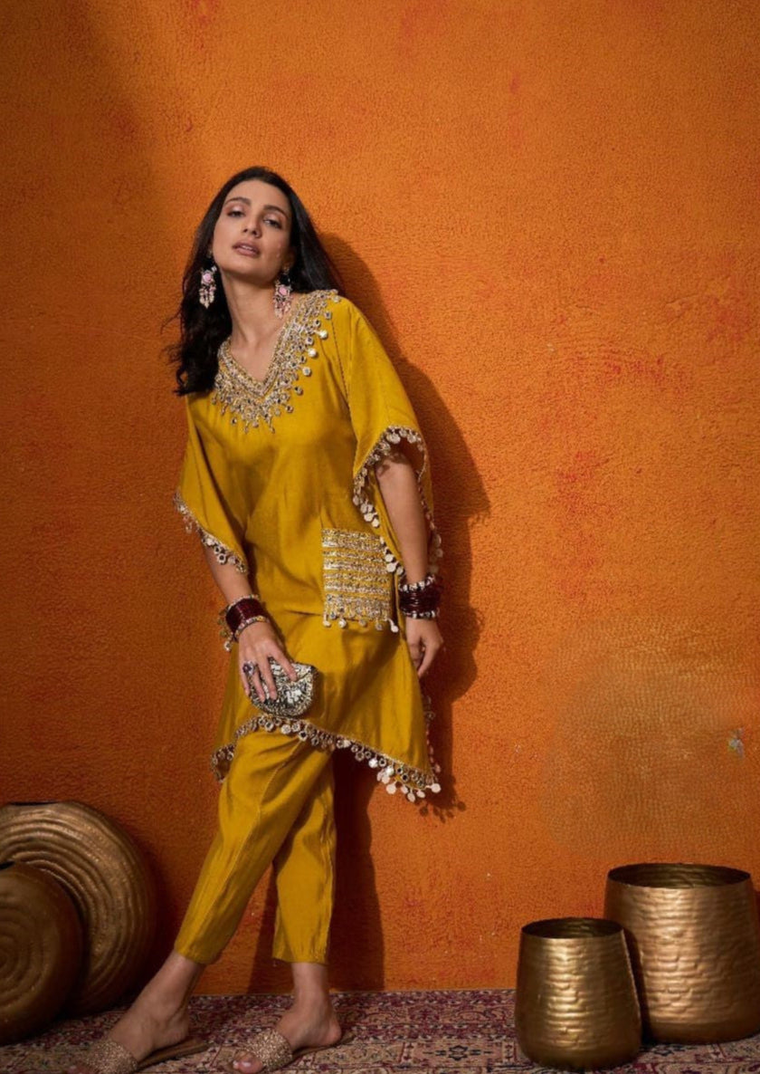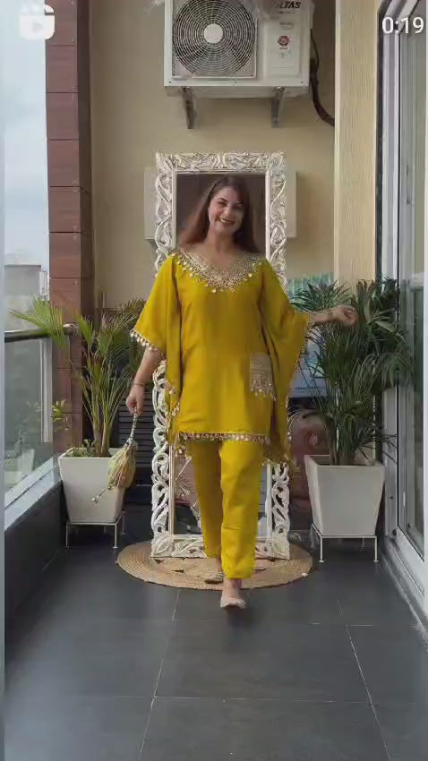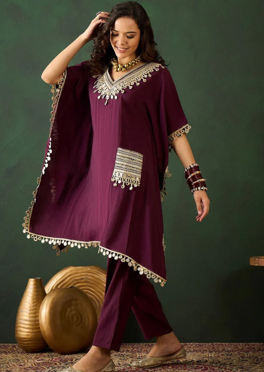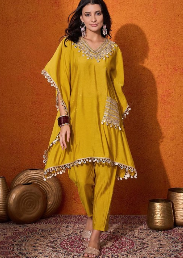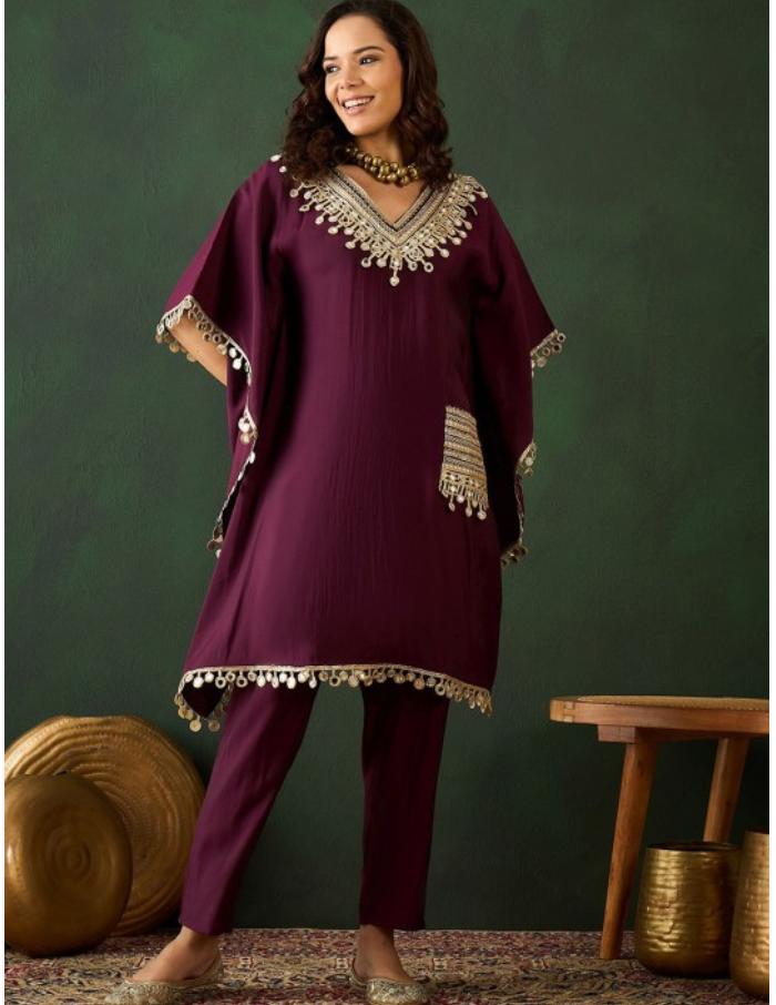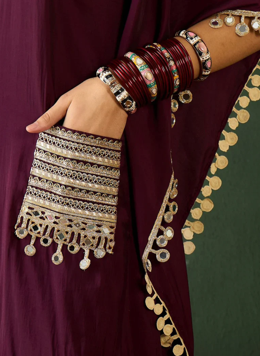 - Intricate Kaftan design with Lace and Mirror Work detailing.