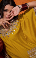 Upgrade your wardrobe with our Lace and Mirror Work Set—a chic co-ord crafted from luxurious Silk blend. Perfect for any festival, this set blends elegance with comfort effortlessly.