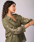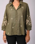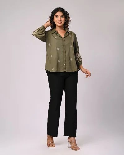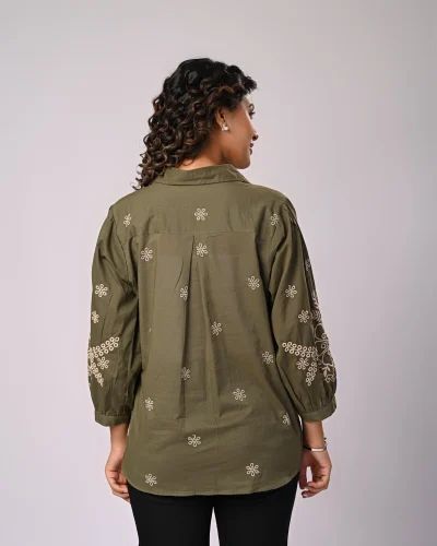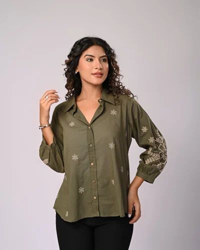 Elevate your wardrobe with this stylish Brown Embroidered Cotton Shirt, designed to blend comfort with timeless fashion. Made from 100% breathable cotton, it features a classic shirt collar, full sleeves, and delicate beige embroidery that adds a refined charm to your look. Perfect for both casual outings and workwear, this versatile shirt keeps you comfortable and effortlessly polished throughout the day. Pair it with denim, trousers, or skirts for a chic and modern appearance.