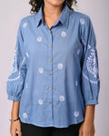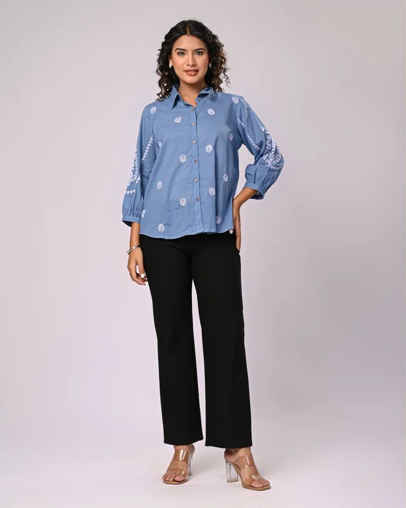 Elevate your wardrobe with this stylish Brown Embroidered Cotton Shirt, designed to blend comfort with timeless fashion. Made from 100% breathable cotton, it features a classic shirt collar, full sleeves, and delicate beige embroidery that adds a refined charm to your look. Perfect for both casual outings and workwear, this versatile shirt keeps you comfortable and effortlessly polished throughout the day. Pair it with denim, trousers, or skirts for a chic and modern appearance.