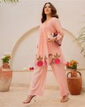 Rose Pink Embroidered Cotton Cord Set