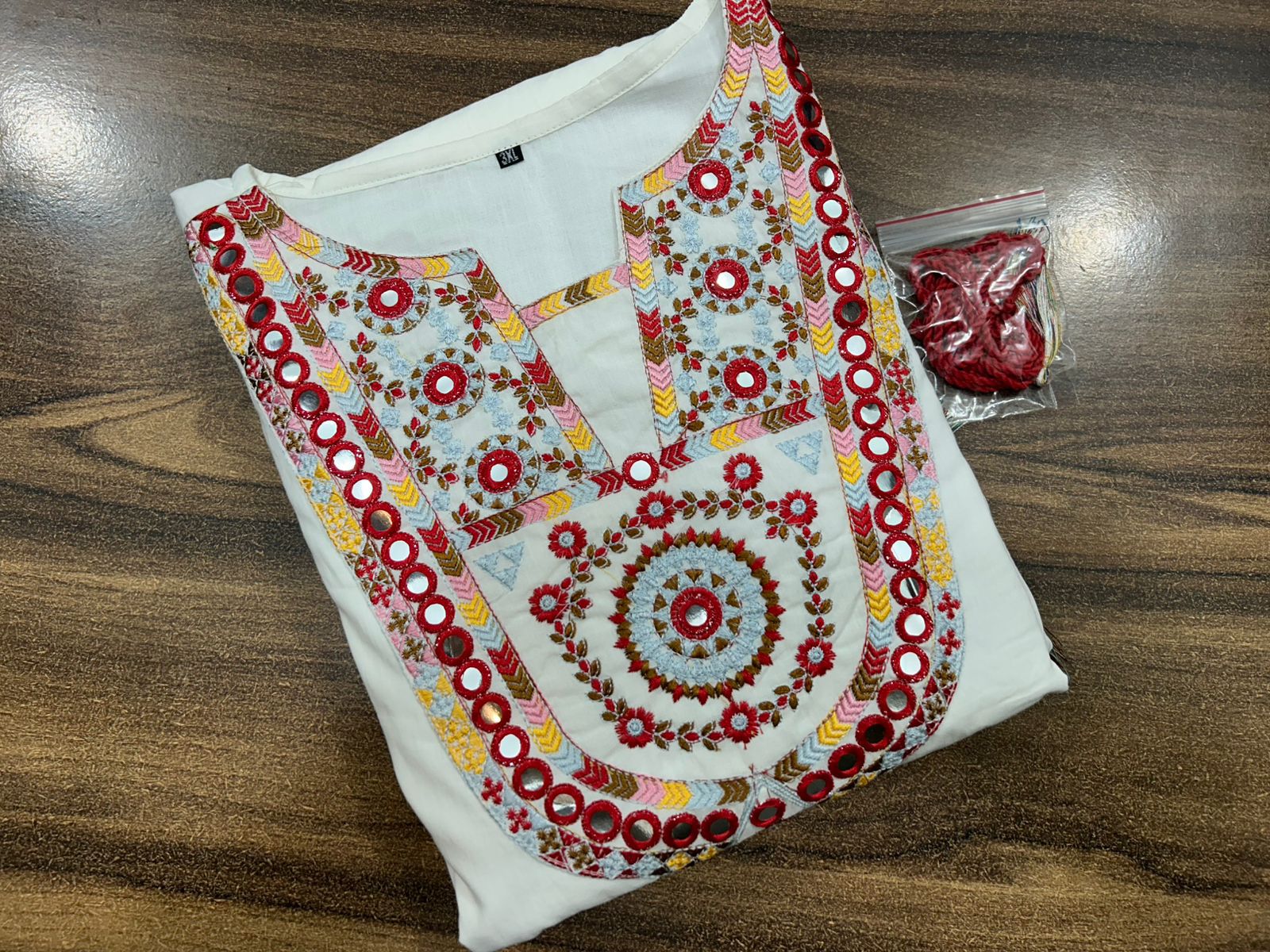 White Elegant Cotton Mirror Work Cord Set
