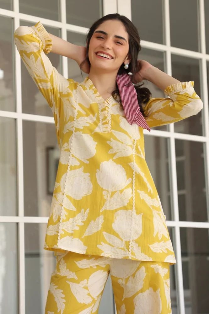 Fabric: Crafted from heavy, breathable, and premium cotton, this co-ord set feels luxuriously soft on the skin, offering year-round comfort and sophistication.