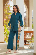 Teal Blue Cotton Printed Cord Set