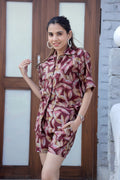 Wine Cotton Modal Silk Shirt & Shorts Cord Set
