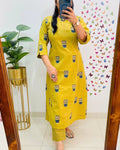 Yellow Printed A-Line Kurta Set